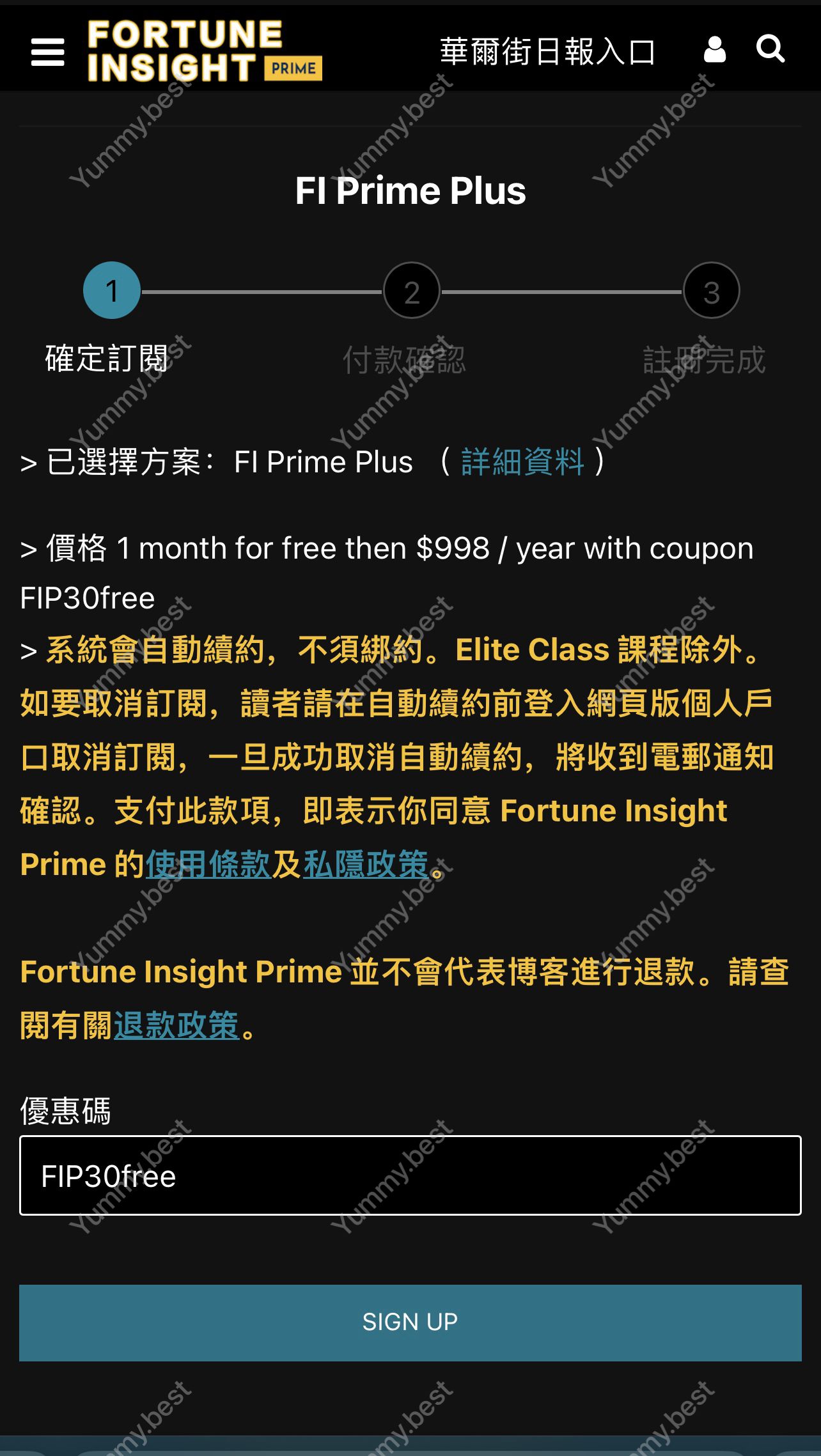 进去后选择 立即订阅 ,然后选择我有优惠码,输入 FIP30free ,即可看到下图