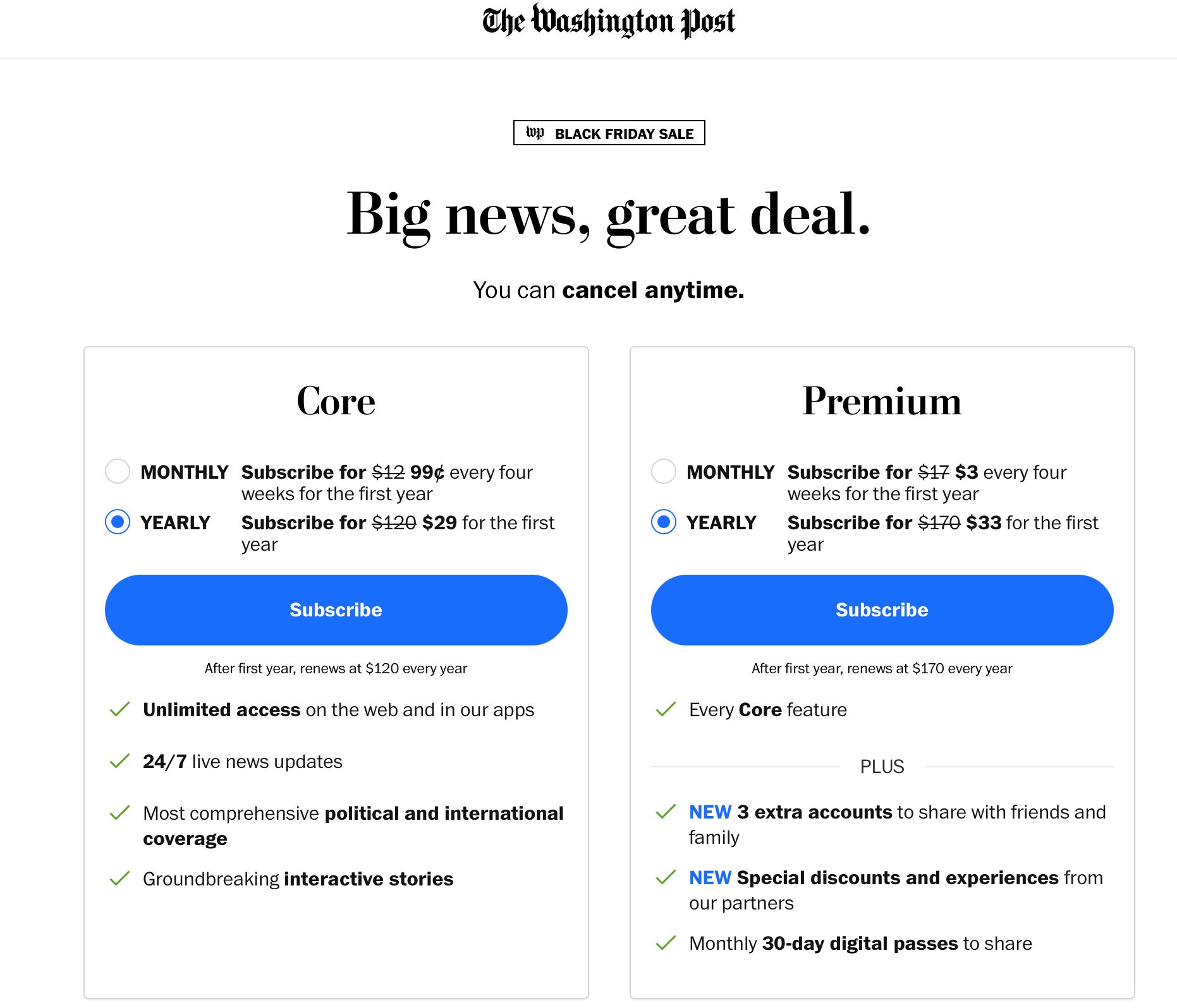 明年可能还会有黑五优惠,所以按月订阅更划算!