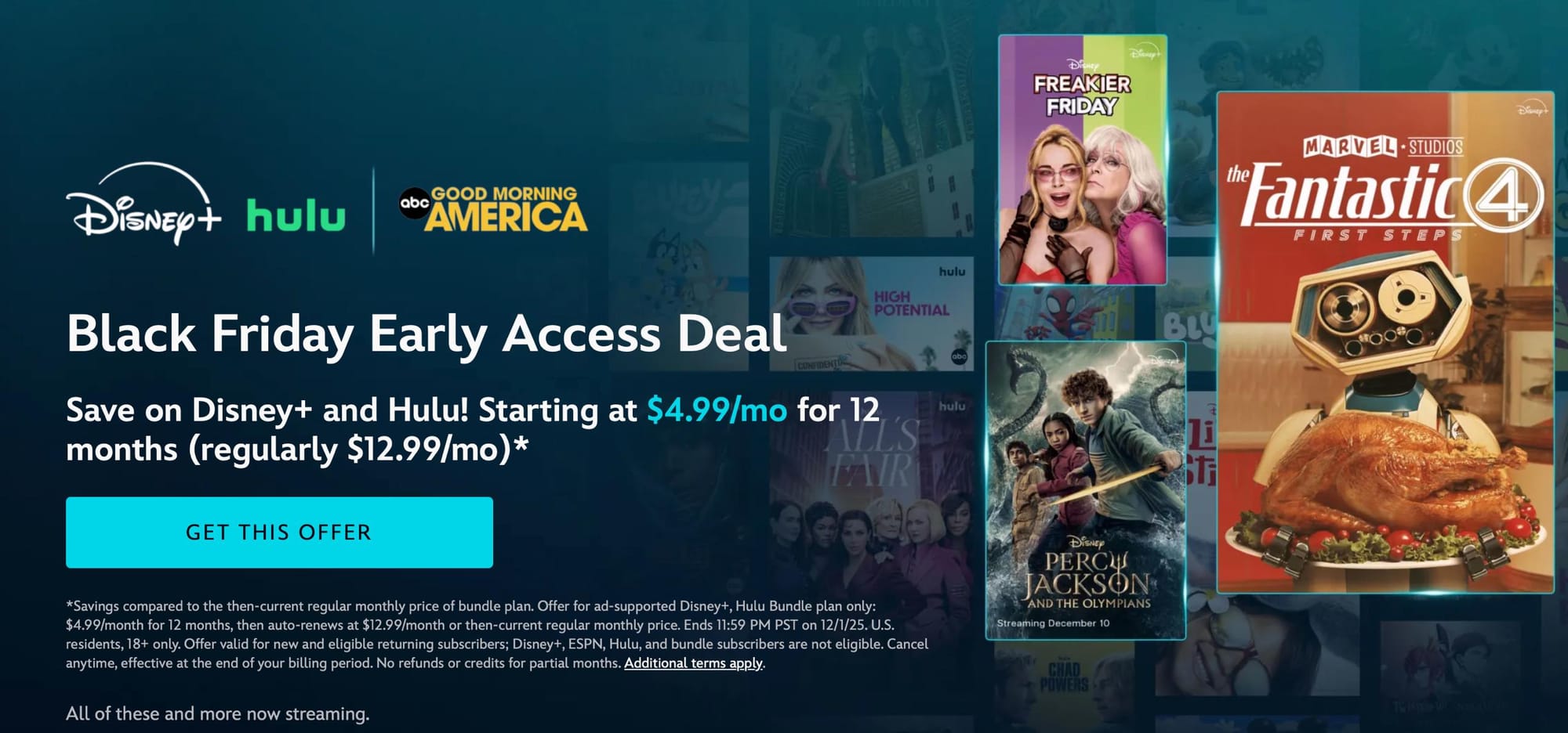 以$4.99/月的价格,订阅12个月的Disney Plus+Hulu 带广告套餐