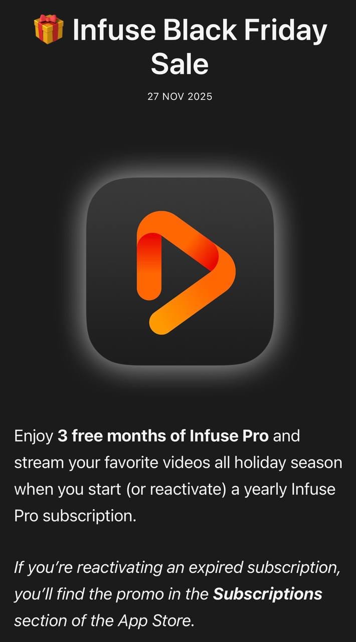 新订阅或续订Infuse Pro年度计划,可额外获得3个月。