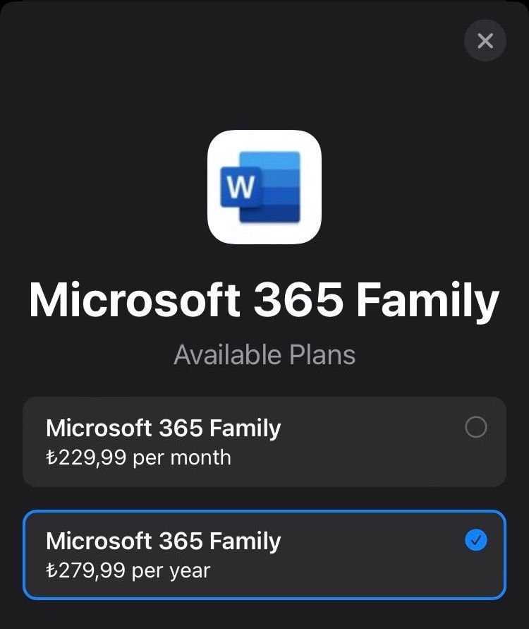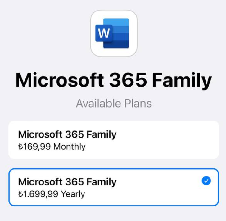 我们接到一份 投稿得知土区 AppStore Microsoft 365 家庭组已涨价至 1699.99TL/Yearly
