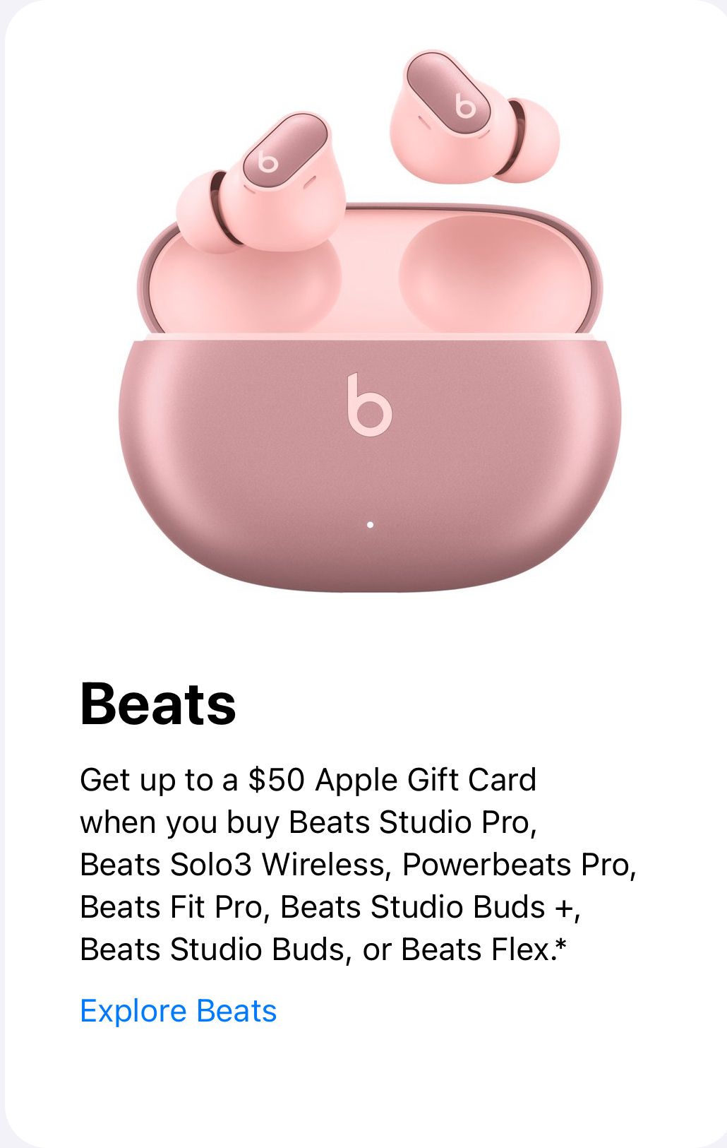 以及部份 Beats 和 Apple 配件(下图可见),最高可得$50 礼品卡