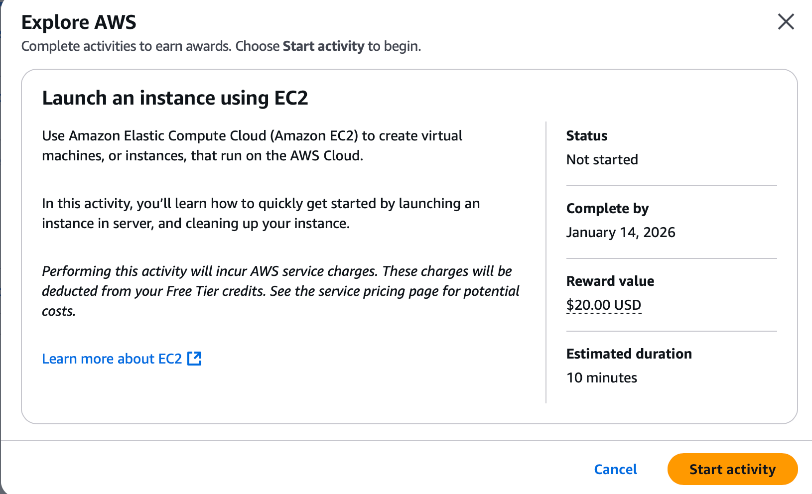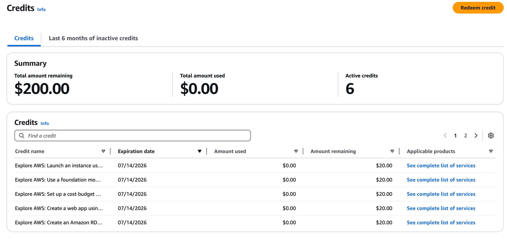 根据 AWS 文档 所述:AWS 更新了免费试用福利,免费信用额度有效期为 1 年,该福利只适用于 2025 年 7 月 15 日之后新注册 AWS 账户的用户。