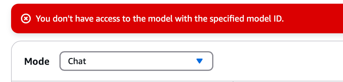 Use a foundation model in the Amazon Bedrock playground任务时,指引会要求你与 AI 进行互动,发出互动消息后会出现下图提示。