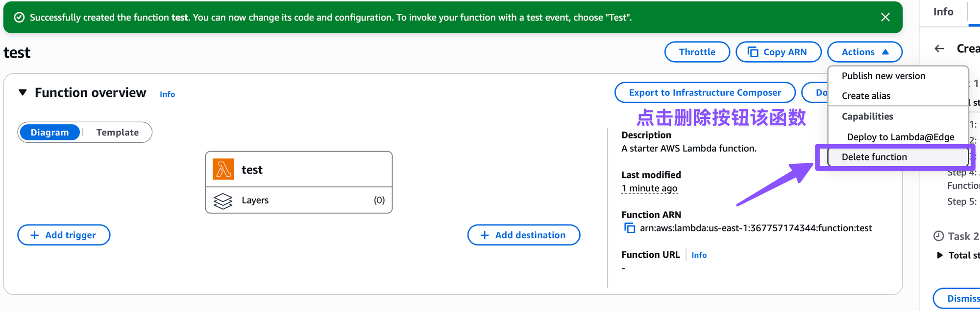 Create a web app using AWS Lambda任务后,记得及时删除该函数