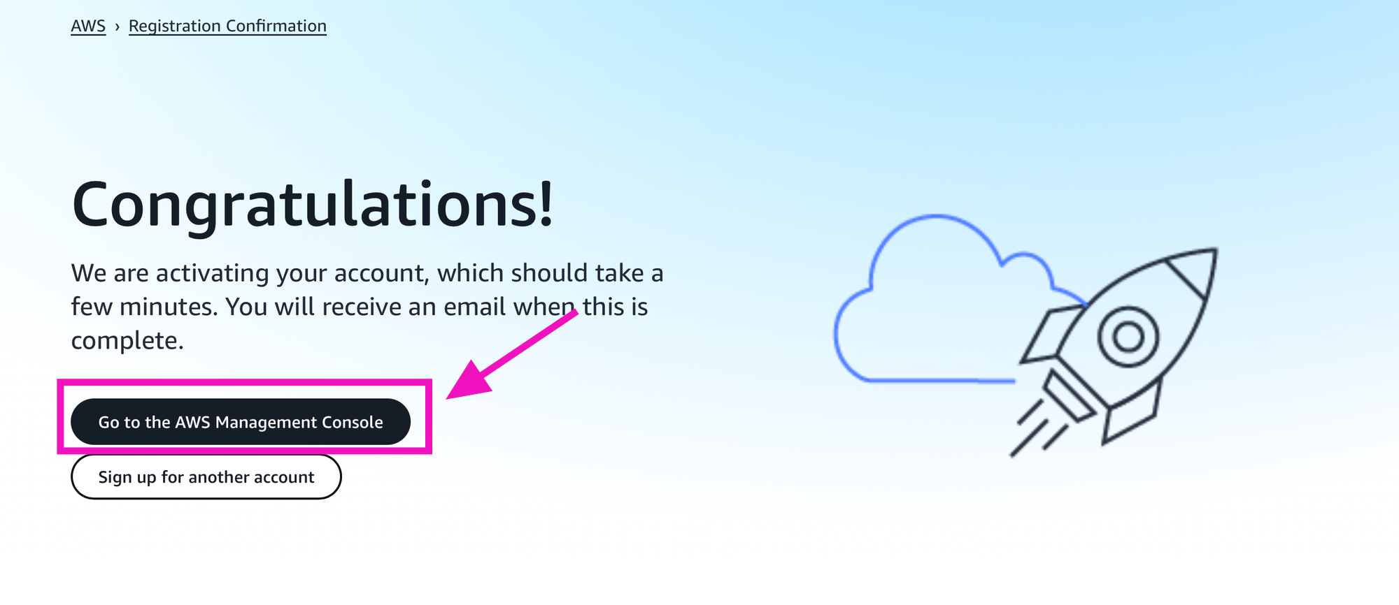 AWS 将花费几分钟来激活你的帐号,请耐心等待。