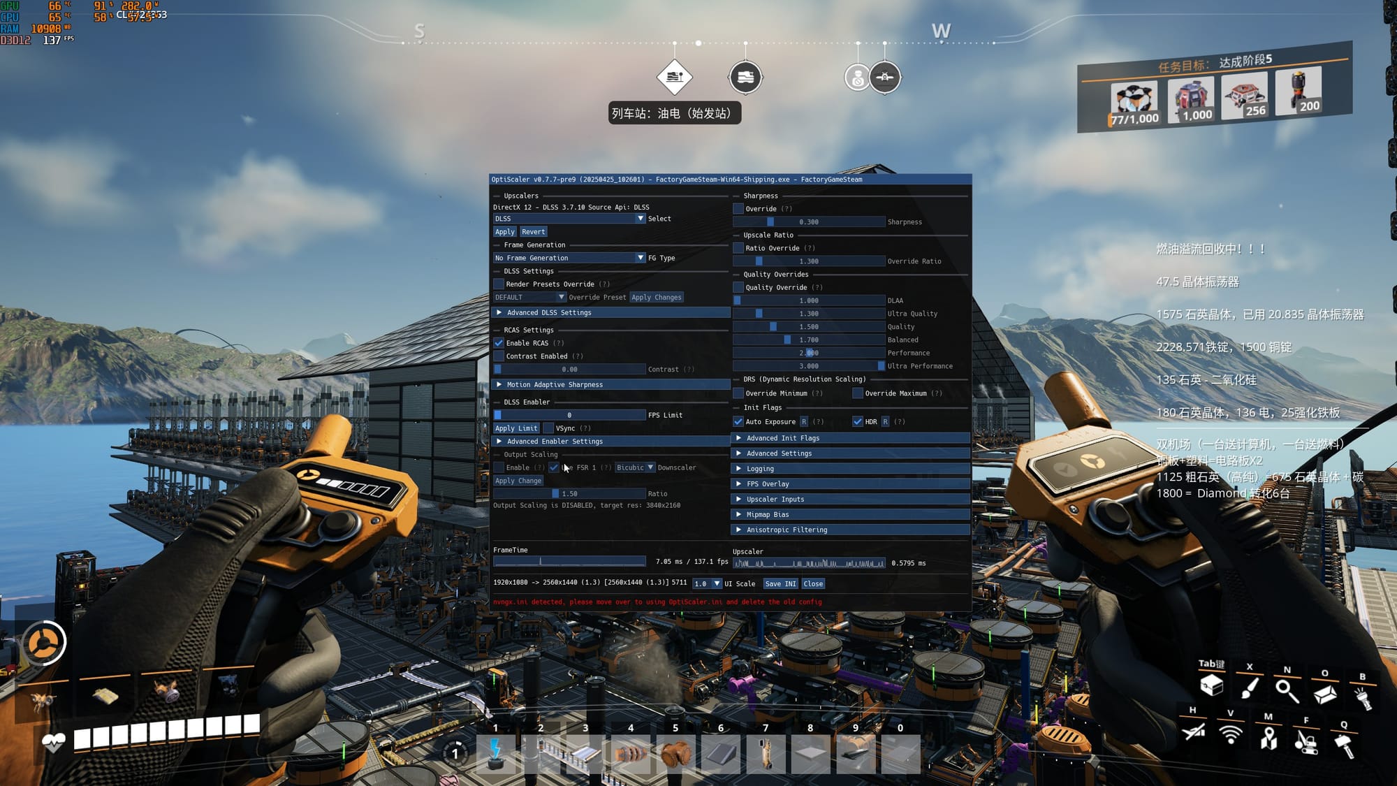 作为比较,我使用的 2080 Ti 在『幸福工厂』这款游戏中成功启用了『帧生成』功能后,帧数由 87 帧提升至 137 帧.